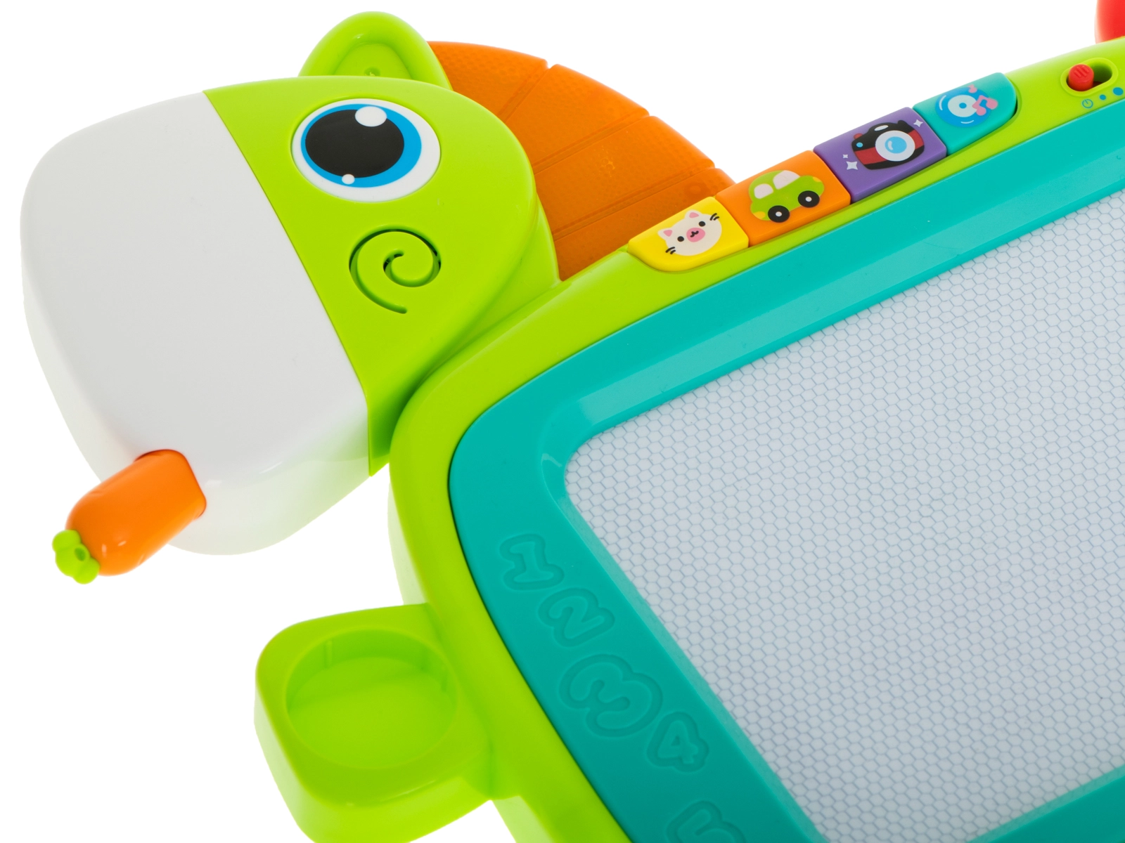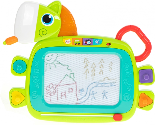 - Farebná magnetická kresliaca plocha (4 zóny), mazanie posuvníkom, svetelné efekty (hriva), zvuky a melódie, 2 úrovne hlasitosti, možnosť vypnutia zvuku