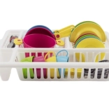 Veselá detská kuchynská súprava v praktickom odkvapkávači prináša hodiny kreatívnej zábavy. Obsahuje všetko, čo malí kuchári potrebujú: tanieriky, šálky s podšálkami, príbory, hrniec s pokrievkou a panvice. Sýte farby upútajú pozornosť a rozvíjajú predstavivosť, jemnú motoriku a návyky poriadku – po „varení“ sa riad jednoducho odloží do odkvapkávača ako u maminky.