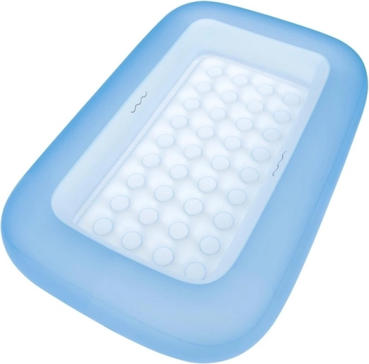 Nafukovací bazén Bestway o rozmeroch 165 x 104 x 25 cm je navrhnutý pre bezpečné a pohodlné používanie malých detí. Je vyrobený z odolného PVC materiálu o hrúbke 0,24 mm a ponúka pohodlné nafukovacie steny, ktoré slúžia ako opora.