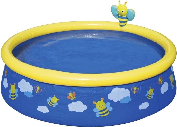 Bazén je navyše vybavený rozprašovačom v tvare zvieratka, ktorý je umiestnený na okraji bazéna a pripojený k záhradnej hadici, čím poskytuje nepretržitý prúd vody na osvieženie vašich detí.