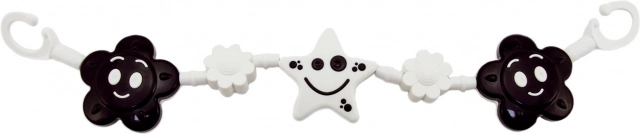 Čiernobiela závesná zábrana s kvetmi a hviezdičkou upúta pozornosť bábätka a zabaví ho na prechádzkach. Jednoduché uchytenie pomocou háčikov na kočík či postieľku.