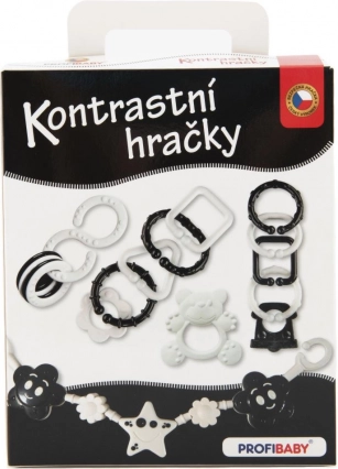 Táto kontrastná sada v čiernobielom prevedení je navrhnutá pre najmenšie bábätká, ktoré ešte nerozlišujú farby. Vysoko kontrastné vzory prirodzene priťahujú pozornosť a podporujú zrakovú stimuláciu aj sústredenie. Vďaka premysleným tvarom sú hračky ľahko uchopiteľné malou rúčkou a pomáhajú trénovať úchopový reflex aj koordináciu oko–ruka.