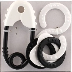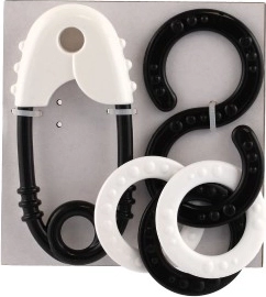 Táto súprava chrastítok obsahuje klasický špendlík a osmičku s krúžkami.