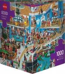 Puzzle Chaotické Kasino od HEYE ponúka unikátnu výzvu s 1000 dielikmi, ideálnu pre fanúšikov farebných a zábavných karikatúr. Balenie obsahuje netradičnú trojuholníkovú škatuľu a plagát ako predlohu.