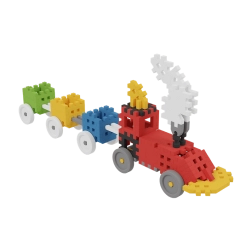 Vďaka ozubeným kolesám a otočným spojkám vzniknú funkčné modely – vrtuľníky, lietadlá či vozidlá. Deti sa prirodzene učia princípy pohybu a prevodov.
