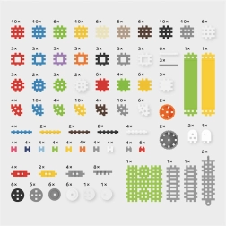 Až 301 dielikov v 27 tvaroch – od základných kociek cez spojky až po špeciálne prvky. Stavajte domy, autá, stroje aj originálne konštrukcie a rozvíjajte fantáziu každý deň.