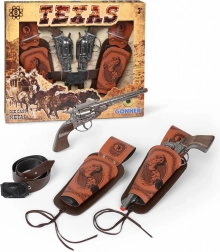 Štýlová kovbojská sada Gonher nadchne malých milovníkov dobrodružstiev. Dva robustné kovové revolvery s detailným spracovaním a púzdrami na opasok vytvárajú verný vzhľad aj pocit pri hre. Kompatibilita s 8-ranovými kapsľami prináša realistický efekt výstrelu a ešte väčšiu zábavu.