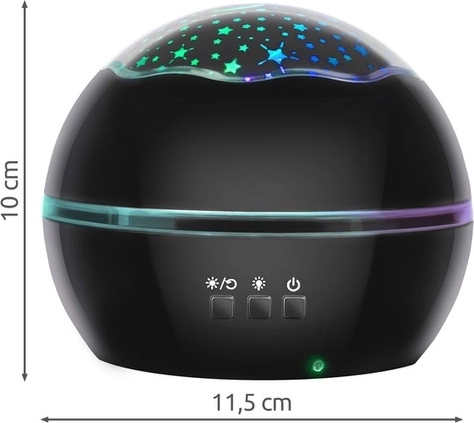 Rotujúca projekcia a voľba zo štyroch farieb (zelená, modrá, biela, červená) vytvárajú pôsobivé svetelné efekty na strope aj stenách.