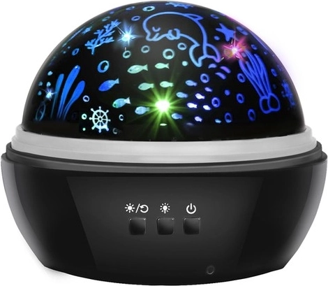 Táto kompaktná nočná lampička s projektorom premení steny a strop na fascinujúci svet plný hviezd alebo morských tvorov. Vďaka dvom vymeniteľným krytom ľahko prepnete medzi rozžiarenou nočnou oblohou a podvodnou scenériou. Tiché svetlo pomáha deťom upokojiť sa a rýchlejšie zaspať.