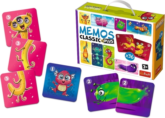 Pexeso Classic & Plus Roztomilé príšerky 3v1 je ideálne pre malé deti, ktoré rady prijímajú nové výzvy. S touto hrou môžu deti začať s jednoduchou variantou a postupne skúšať zložitejšie úrovne. Hra obsahuje 36 veľkých, kartónových kartičiek s roztomilými ilustráciami, ktoré slúžia nielen na precvičenie pamäti, ale aj na zlepšenie koncentrácie.