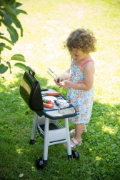 Predstavujeme detský gril na hranie od renomovanej značky Smoby, ktorý prináša radosť a zábavu všetkým malým milovníkom varenia. Tento gril je vybavený 18 autentickými doplnkami, medzi ktoré patria hamburger, špíz, kliešte na gril, zvuková zapaľovačka a mlynček na soľ a korenie. Vďaka tomuto vybaveniu môžu deti zažiť skutočný pocit z grilovania.