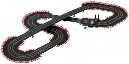 Modulárny okruh v tvare osmičky s dvojitým mostom, predbiehacími dielmi a širokými zákrutami 1/60° pre plynulé súboje a driftovanie.