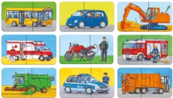 Táto sada obsahuje 9 samostatných puzzle, každé z 2 dielikov, s motívmi ako hasič, smetiar, bager, kombajn, autobus či motorka. Vďaka jednoduchému počtu dielikov je skladanie ideálne na prvé zoznámenie s puzzle a podporuje správny rozvoj zručností.