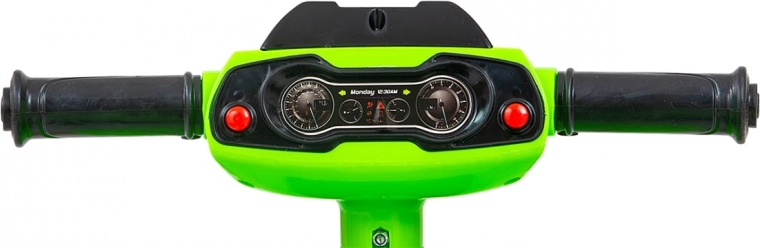 Detské odrážadlo v štýle štvorkolky MILLY MALLY Monster v zelenej farbe je skvelým parťákom pre prvé samostatné jazdy. Interaktívny volant na batérie prehráva melódie, svetelné efekty zvyšujú radosť z hry a úložný box pod sedadlom pojme všetky detské poklady. Stabilná konštrukcia so širokými kolesami a ochranou proti prevráteniu posilňuje pocit istoty pri každom odraze.