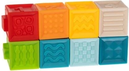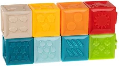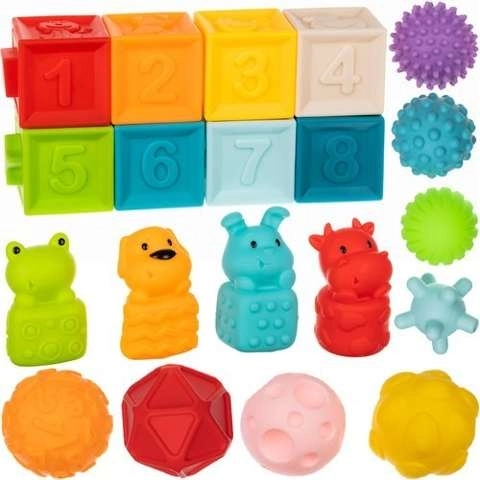 Majú krásne živé farby, ktoré dokonale stimulujú vývoj vášho dieťaťa. Vďaka špeciálnym prehĺbeniam a výstupkom môže dieťa spájať kocky do radov. Zmyslové hračky formujú schopnosť prijímať, chápať a reagovať na podnety z okolia. Pomocou kociek môžeme zlepšiť koordináciu pohybu a stimulovať zmysly, ako je sluch, zrak alebo hmat. Bloky po stlačení vydávajú jemný klasický zvuk, ktorý bude pre vaše dieťa príjemným a zaujímavým zážitkom. Bloky sú vyrobené zo špeciálneho mäkkého materiálu, ktorý je veľmi mäkký a ľahký a neobsahuje žiadne škodlivé látky, takže je ich možné používať ako hryzadlo pre dojčatá. Senzorické podložky sú vizuálne atraktívne a majú starostlivú, precíznu povrchovú úpravu. Ich pestré farby, rôzne tvary a veľkosti pritiahnu detské oči a určite ho povzbudia ku hre.