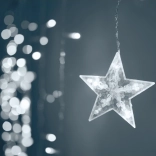 Táto svetelná opona s priehľadnými hviezdami v rôznych veľkostiach rozžiari okná, steny aj fotokútiky. Studená biela farba vytvára čistý, sviatočný vzhľad a jemné svetlo, ktoré je ideálne na vianočnú výzdobu, detskú izbu aj romantické večery.