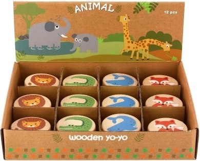 Táto sada 12 drevených joj prináša nadčasovú hru v modernom, veselom poňatí. Každé jojo má hladký prírodný povrch a farebnú potlač so zvieratkom, ktorá deti okamžite zaujme. Vďaka príjemnej veľkosti 5,5 cm sa dobre drží a ľahko ovláda aj menšími detskými rukami.