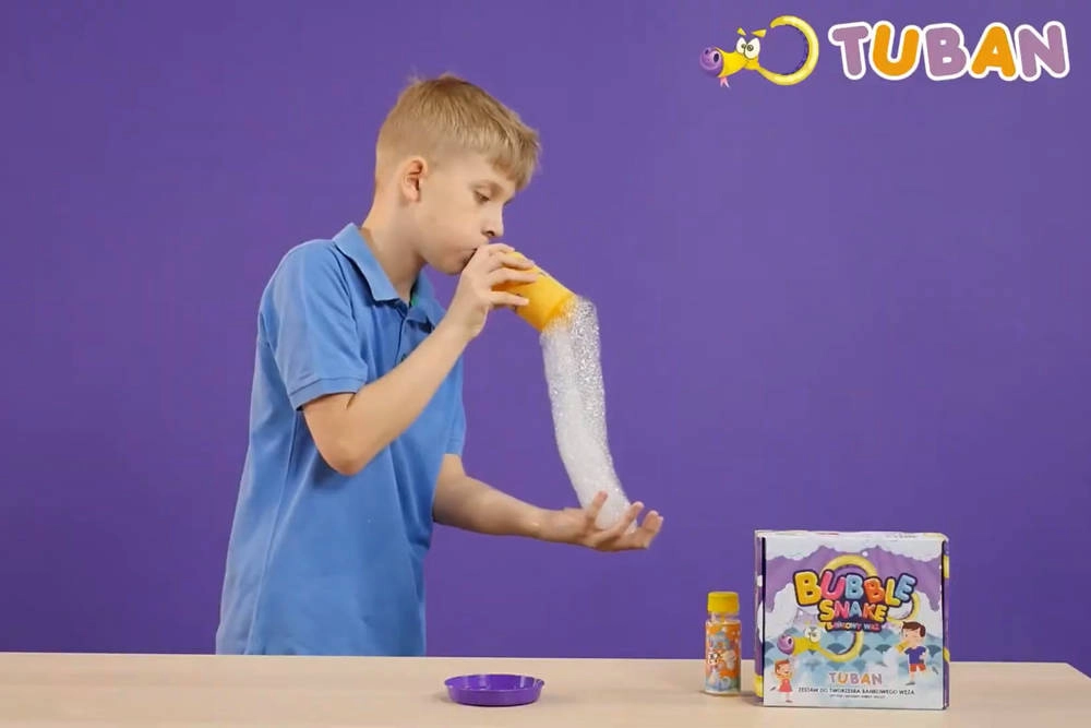 Objavte zábavného bublinkového hada od značky Tuban – kreatívnu sadu na bubliny, ktorá premení každý výdych na dlhý reťazec bubliniek. Jednoduché použitie, rýchla príprava a kopec radosti pre deti aj dospelých.