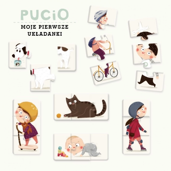 Každá zo 7 skladačiek sa skladá z 3 pevných dielikov s klasickými výstupkami. Deti sa zoznámia s milovanými postavami z knižného sveta PUCIO – Puciom, Misiou, Bobo, maminou, otcom, psom Funiom a mačkou Mimi. Hra rozvíja jemnú motoriku, zrakové vnímanie, koordináciu ruka–oko a logické myslenie.