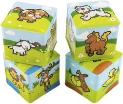 Každá kocka má výrazné farby a zábavné motívy zvierat, ktoré pomáhajú rozvíjať rozpoznávanie tvarov a farieb, koordináciu oko–ruka aj prvú slovnú zásobu. Praktické balenie po 4 kusoch je ideálne na doma aj na cesty.