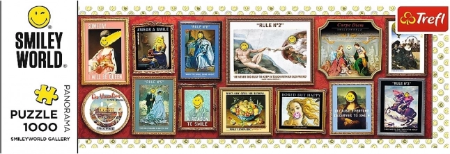 Panoramatické puzzle s veselým motívom SMILEY Galéria ponúknu hodiny pokojnej zábavy pre dospelých aj staršie deti. Formát panorama sa po zložení krásne vyníma v interiéri a vďaka kvalitnej tlači vyniknú všetky detaily.