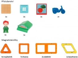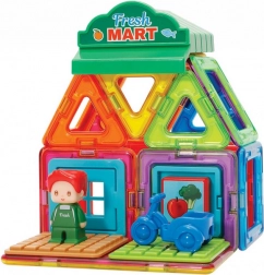 So stavebnicou Magformers Mestečko Tržište môžete stavať rôzne architektonické stavby podľa vlastnej fantázie. Obsahuje 14 magnetických tvarov a 8 funkčných doplnkov, vrátane malej predavačky, ktoré umožňujú tvoriť poloodkryté prieřezy, kde sú z jednej strany viditeľné vonkajšie kontúry stavby a z druhej interiérové riešenia.