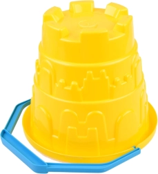 Plastový vedro s modrou rukoväťou a formičkami vo vnútri vám umožňuje ľahké prenášanie na pláž alebo do záhrady.
