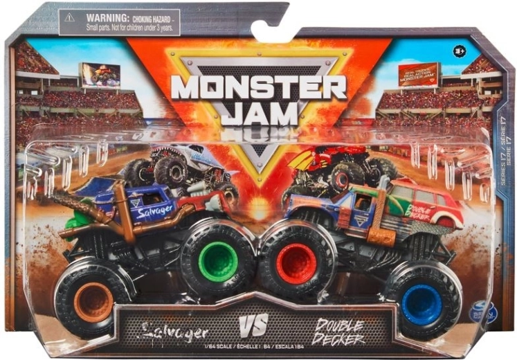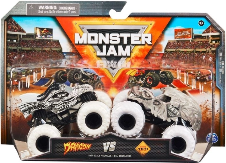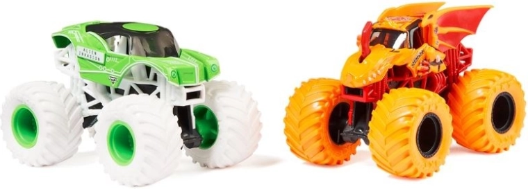 Oficiálne kovové modely Monster Jam v mierke 1:64 verne kopírujú vzhľad svojich skutočných predlôh. Dvojbalenie obsahuje výber z najobľúbenejších truckov, ako sú napríklad GRAVE DIGGER, HIGHER EDUCATION, BULLDOZER, RACING STRIPES, DRAGON alebo YETI. Každý truck má precíznu grafiku, autentický rám a vodiča priamo na sedadle – okamžite pripravené na show.