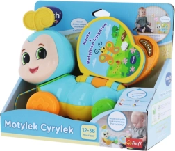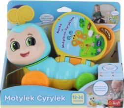 Po zatiahnutí za šnúrku sa motýlik rozbehne a sprevádza deti veselými zvukmi a frázami. Podporuje prirodzenú túžbu loziť a chodiť.