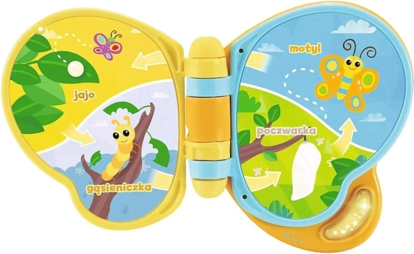 Krídla motýlika slúžia ako otváracia knižočka, ktorá pomáha rozvíjať jemnú motoriku, zvedavosť a prvé poznatky o prírode. Deti sa naučia rozpoznávať fázy vývinu motýľa a získajú základné vedomosti o zvieratách hravou formou.