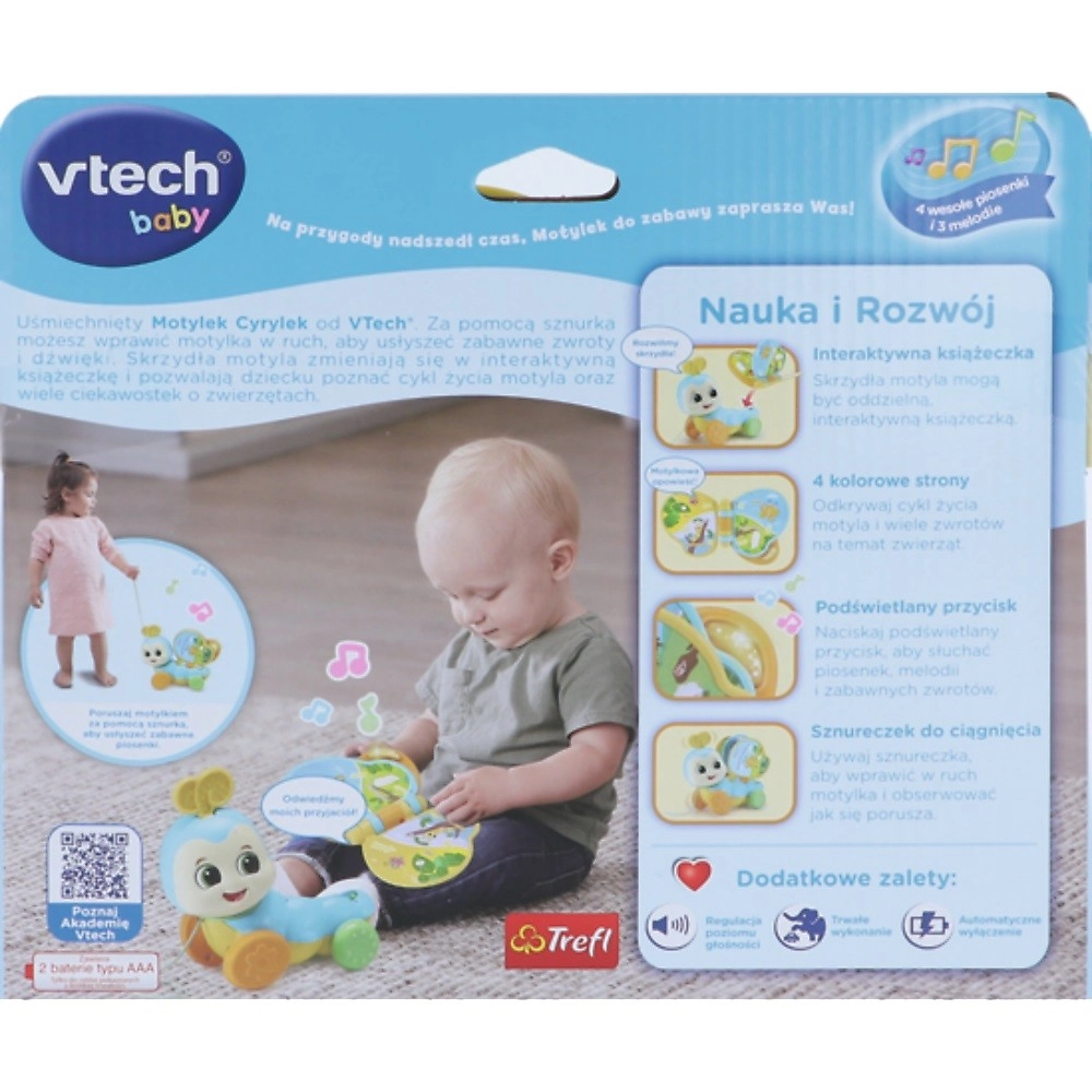 Roztomilý interaktívny motýlik od VTech poteší každé batoľa. Po zatiahnutí za šnúrku sa rozbehne a vydáva veselé zvuky a frázy. Jeho krídla fungujú ako interaktívna knižočka, ktorá deťom zábavnou formou približuje životný cyklus motýľa a ďalšie zaujímavosti o zvieratách. Vhodné pre deti od 12 do 36 mesiacov.