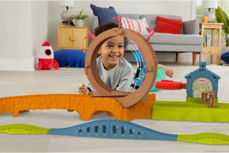 Malí železničiari sa môžu predviesť na slučkovej a hrboľatej trati v sade Tom a priatelia Epická slučka – opravárenský dvor od spoločnosti Fisher-Price. Táto sada s pohonom obsahuje 3,9 m koľají, na ktorých si môžete zopakovať kľukaté dobrodružstvá z kresleného seriálu Tom a priatelia. Pošlite Toma s pohonom na bláznivú cestu cez slučku a hrboľatú trať, aby mohol doručiť tovar. Sada je kompatibilná so všetkými koľajami Tom and Friends okrem drevenej línie. (Ďalšie sady sa predávajú samostatne v závislosti od dostupnosti).