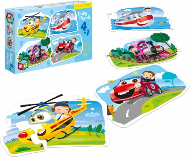Puzzle Dopravné Prostriedky 4v1 sú ideálne pre deti od 2 rokov, ktoré chcú začať skladať prvé puzzle. Každé z puzzle obsahuje rôzny počet dielikov pre progresívnu náročnosť a rozvoj schopností.