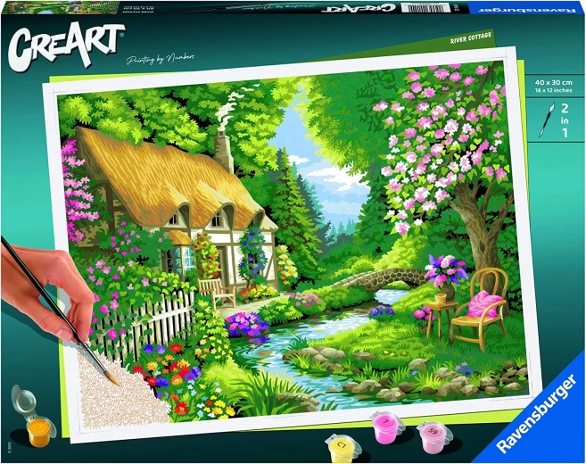 Sada CreArt ponúka všetko, čo potrebujete na to, aby ste bez skúseností namaľovali pôsobivý obraz s motívom pokojného domčeka pri rieke. Vďaka predtlačeným farebným hraniciam namiesto čiernych kontúr budú okraje a prechody pôsobiť prirodzenejšie a výsledný obraz získa ešte profesionálnejší vzhľad.