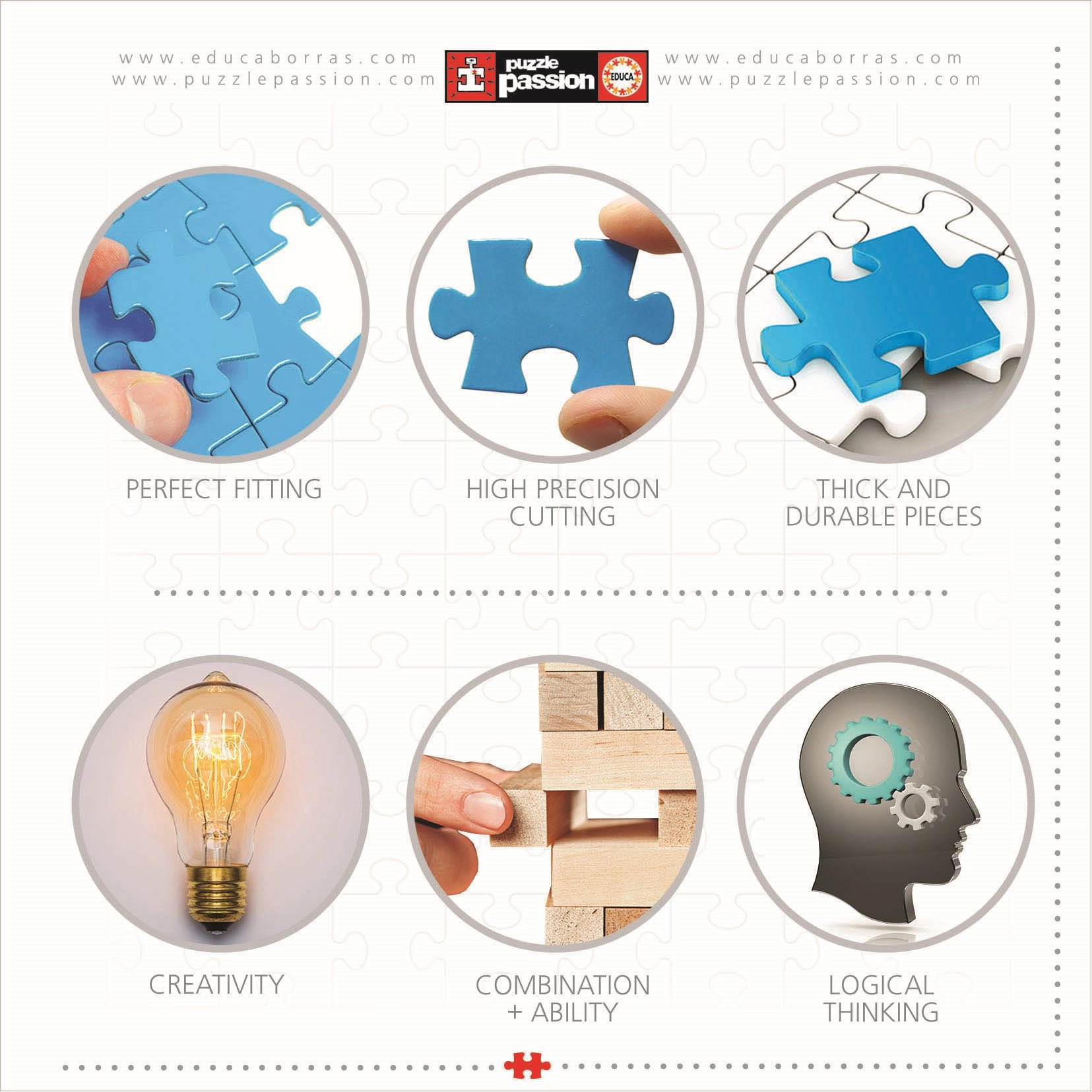 - Prémiová kvalita EDUCA – pevné dieliky, presné výrezy, sýte farby