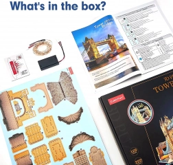 Objavte krásu londýnskeho Tower Bridge s 3D puzzle stavebnicou od CubicFun. Tento model zo série Architecture Model-LED Lighting je vyrobený zo špeciálneho materiálu - peny potiahnutej laminovaným potlačeným papierom o hrúbke cca 3 mm. Výhody tohto modelu:
