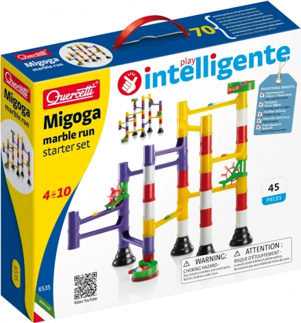 QUERCETTI Migoga štartovací set: guľôčková dráha so 45 dielmi. Učí gravitáciu a mechaniku, rozvíja motoriku a logiku. Ideálne pre deti od 4 rokov.