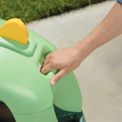 Pre ešte väčšiu zábavu a komfort ponúkne volant s klaksónom, klíkacie zapaľovanie, otváracie viečko nádrže a držiaky na nápoje za sedadlom. Predné kolieska sa otáčajú o 360°, čo uľahčuje zatáčanie doma aj vonku. Rodičia môžu vozidlo ľahko viesť vďaka integrovanému madlu v streche. Výroba technológiou rotomoulding zaisťuje dlhú životnosť a odolnosť.