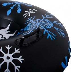Nafukovací klzák v tvare kruhu so štýlovou zimnou potlačou vločiek je skvelou voľbou pre malých aj veľkých milovníkov snehu. Pevné bočné úchyty dodajú istotu a kontrolu pri jazde, zatiaľ čo odolné PVC a premyslený tvar zaisťujú rýchly sklz a veľa zábavy.