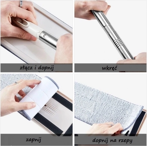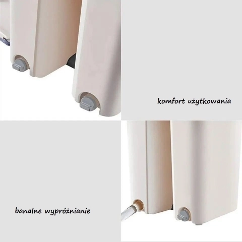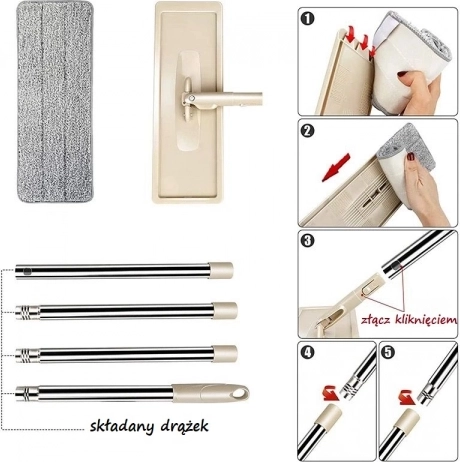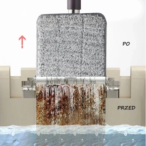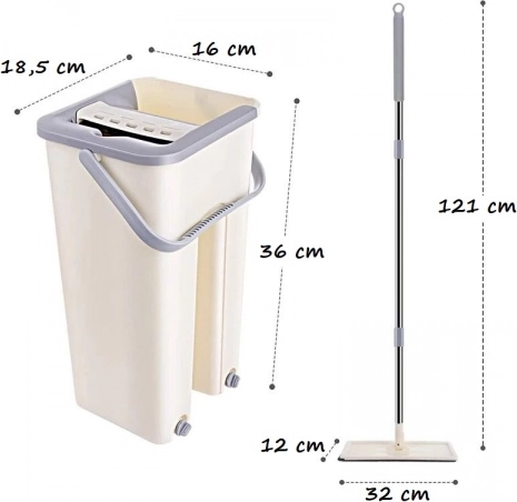 Mop je vybavený dvojkomorovým vedrom s žmýkačkou. Pri oplachovaní mopu zostávajú nečistoty v nádobe na špinavú vodu, zatiaľ čo pri žmýkaní v druhej komore prúdi voda do komory na špinavú vodu a oplachuje ju v čistej vode.