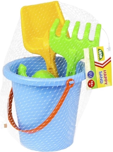 - Kompletná výbava: vedierko 16 cm / 1,4 l, lopatka, hrabličky, 3 formičky