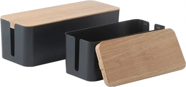 Praktické bočné štrbiny umožňujú pohodlné vyvedenie káblov bez lámania či krútenia. Dizajnové veko s dreveným dekorom doladí moderný aj škandinávsky štýl interiéru a z obyčajného káblového boxu robí estetický doplnok.