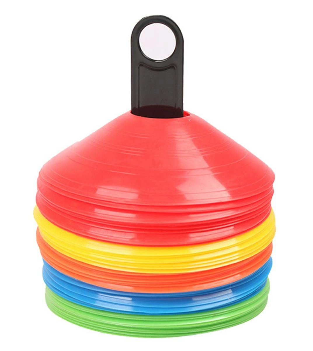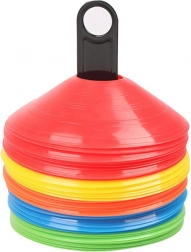 Praktické elastické tréningové kužele v piatich intenzívnych farbách sú ideálne pre vytváranie tréningového priestoru a delenie tímov v kolektívnych športoch. Umožňujú pohodlne označiť tréningové zóny a hracie polia. Súčasťou balenia je špeciálny stojan s rukoväťou na jednoduché uskladnenie všetkých kuželov. Vhodné pre použitie na akejkoľvek povrchovej ploche a za všetkých poveternostných podmienok. Odolávajú vlhkosti a intenzívnemu slnečnému žiareniu bez praskania či vyblednutia.