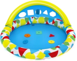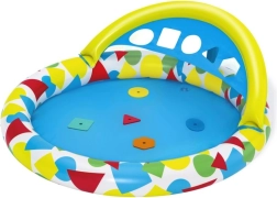 Nafukovacie mäkké okraje, plytká vodná plocha a strieška poskytujú pohodlie a vyššiu bezpečnosť pri vonkajšom hraní.