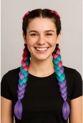 Doprajte svojmu účesu okamžitú zmenu pomocou syntetických ombré vrkôčikov v pastelovej kombinácii ružová–tyrkysová–fialová. Ľahké vysokoteplotné vlákna sú príjemné na nosenie, nezťažujú vlasy ani pokožku hlavy a skvelo držia tvar po celý deň. Ideálne na každodenný styling, party, cosplay aj festivaly – pripevníte a zložíte, kedykoľvek chcete.