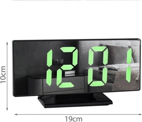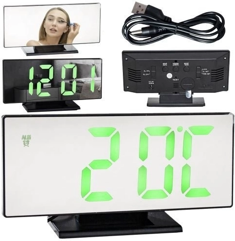 4v1 - hodiny, budík, zrkadlo a teplomer!Všetko v jednom kompaktnom zariadení.Budík je vybavený predným zrkadlom, ktoré zobrazuje informácie, ako je čas a teplota. Vďaka kompaktným rozmerom a nízkej hmotnosti si ho môžete vziať so sebou na cesty.Skvele poslúži aj pri spaní v stane, kde predné zrkadlo umožňuje rýchle nalíčenie a úpravu účesu .
