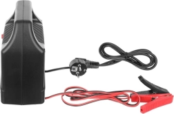 Praktická rukoväť, kompaktné rozmery a nízka hmotnosť uľahčujú skladovanie aj prenášanie. Prepínačom zvolíte správne napätie (6 V / 12 V) a robustné svorky zaistia istý kontakt s pólmi batérie.