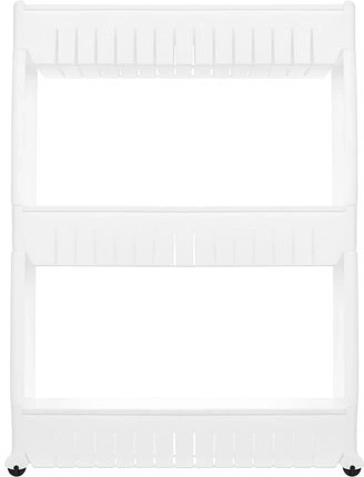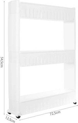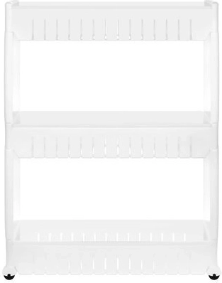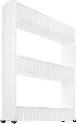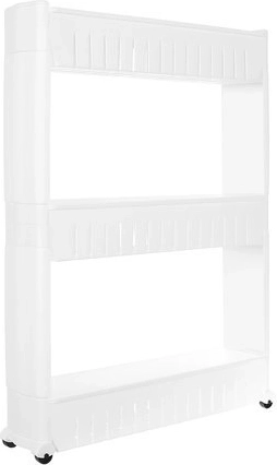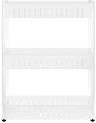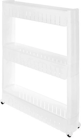 Táto mobilná kuchynská polička na kolieskach je perfektná na využitie úzkych priestorov medzi skrinkami. Vyrobená z odolného plastu, obsahuje tri hlboké police pre organizáciu potrebných predmetov.