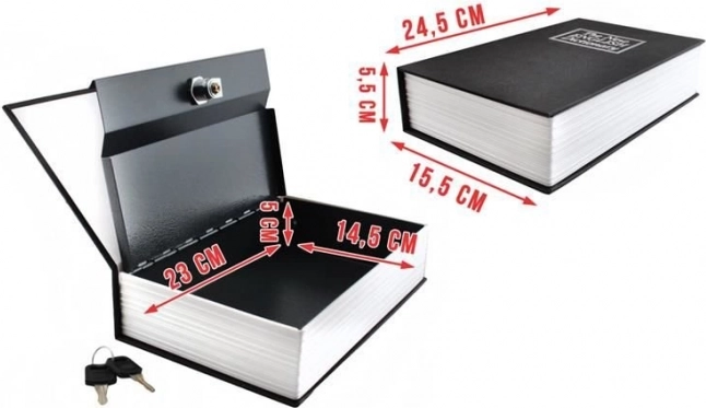Diskrétny sejf v tvare knihy s podobou anglického slovníka splynie s knižnicou a spoľahlivo ochráni vaše cennosti. Vo vnútri je kovová schránka so zámkom na kľúč, ideálna pre domov, kanceláriu aj hotel. Skvelé riešenie na nenápadné uloženie peňazí, šperkov a dokumentov.