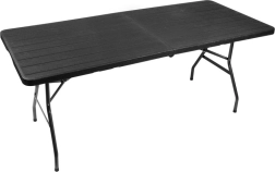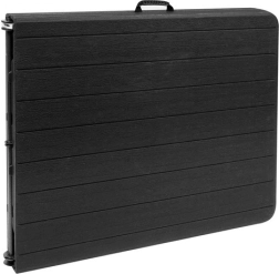 Hľadáte veľký a odolný stôl na rodinné oslavy, grilovanie alebo podujatia? Tento skladací stôl s dĺžkou 180 cm poskytne dostatok miesta na servírovanie aj pohodlné sedenie väčšej skupiny. Doska z HDPE s atraktívnym vzhľadom dreva je pevná, pružná a ľahko sa udržiava. Po zložení sa stôl premení na plochý kufrík, ktorý jednoducho prenesiete a uložíte.